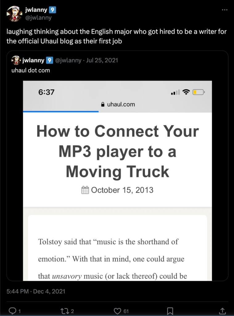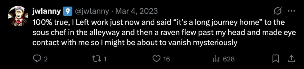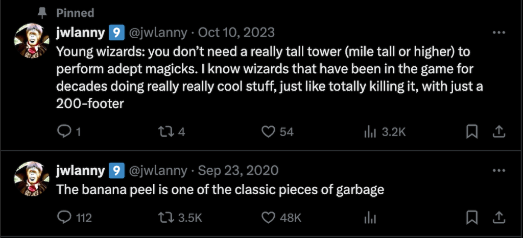 This is my personal twitter page that I regularly posted on from 2019 to sometime in 2024. During that time I gathered a modest but devoted following. These are some of my favorite and most popular posts.